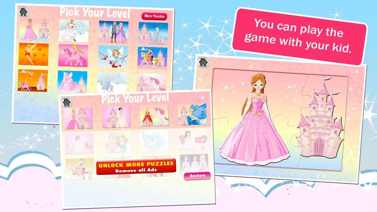公主拼图是一款趣味益智类游戏,适合2到5岁儿童,让孩子们在游戏中学习空间想象能力和逻辑能力,同时多个公主图片也能培养孩子的审美和学习兴趣,当孩子找不到正确位置时可以使用下方的提示按钮。