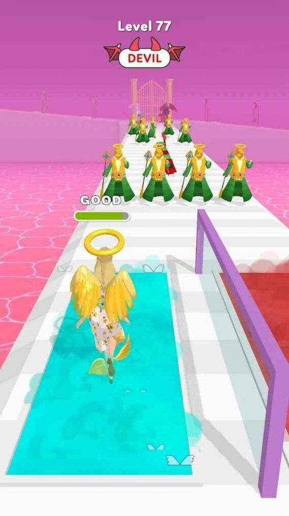 天使恶魔跑酷游戏:合理控制的方向进展,尽量不要碰任何危险物品在路上见过,以避免任何损害。尽量迅速和安全地向前发展了很长一段时间,享受它,最后达到一个意想不到的距离。