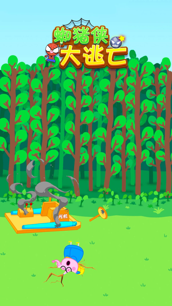 蜘猪侠大逃亡是一款休闲益智冒险类游戏,游戏画面充满卡通的趣味,通过点击插销触发事件,让机关启动,帮助角色通过关卡,寻找道具和可交互对象,寻找逃脱的办法。