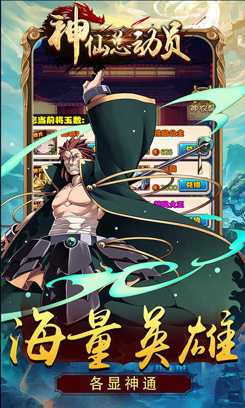 神仙总动员是一款非常独特的休闲放置类手游神仙总动员是一款卡牌手游,挑战副本战斗,更有元宝每日2万,更多的挑战等你来探险。