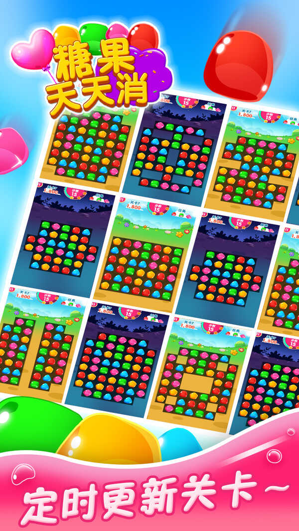 糖果天天消红包版是一款超欢乐的消消乐游戏。来玩消消乐吧,充满了糖果的甜蜜画面,可爱到爆炸的消除特效,不断更新的关卡内容,每天都有新的挑战等你完成,轻轻点击屏幕轻松享受消除趣味,无论你在哪里都能快乐消除闯关。