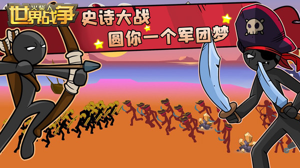 火柴人世界战争是一款冒险策略战争类游戏,带领火柴人和敌军炸开激烈的战争,体验恢弘的史诗战争场景,指挥军队排兵列阵,占领城池和土地获得胜利,获得更多兵种。