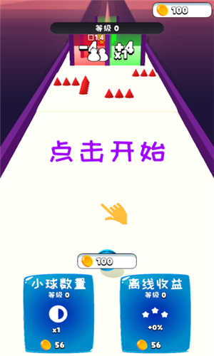 2、开始游戏你需要控制一个小球,让他不断的变大变多;