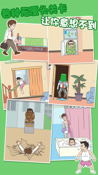 一个非常有趣和有趣的情侣突破游戏。在游戏中,作为一个男人,玩家需要不断地避免寻找妻子,并使用有限的工具来尽可能地隐藏自己,以免被妻子发现。否则它将结束,为了躲避主人的搜查,我们必须要借助各种工具帮助老王逃离这座房子,在神不知鬼不觉的情况下,安静的离开,各自令人崩溃的场景内容,十分的让人过瘾。