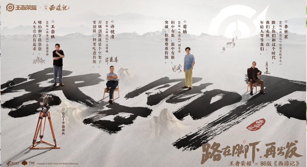 身后是西游戏摄制组主创人员们,一往无前、历苦寻径精神实质和信念