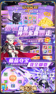 魔魂召唤送欧皇千充版是全新的福利版手游游戏的场景布置非常的精美,还有超多的炫酷的技能体验,创建就送钻石、金币等等,只要你需要的都会免费赠送哦。
