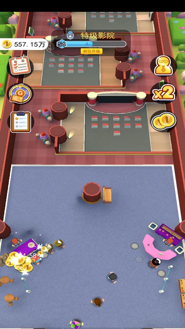 2、丰富的院线经营玩法,玩家需要合理管理物品,雇佣经理赚;