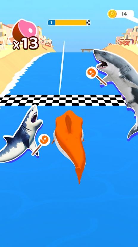 自由的操控自己的鲨鱼来进行各种各样的跑酷闯关,玩家需要不断的吞噬各种小鱼来让自己的速度变快,让自己能够快速的到达终点,顺利的通过一个个关卡!