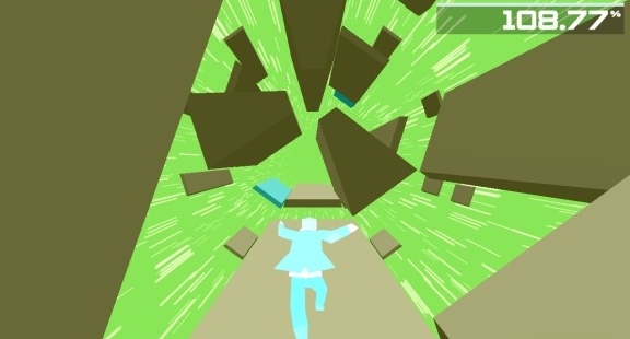 游戏的画面构造并不复杂,背景,平台,人物,是构成游戏画面的三项主要因素,从背景上来说,更像是走在时空隧道里面,非常具有3D层次感,在平台方面,游戏中的平台更具梦幻,不仅仅只是静态的组成通道,有些地图这些平台还会组成图形,以及会突然消失出现的动态平台,都是带给玩家不停的视觉享受,但这种享受并不是画面质量那种直观的享受,而更多的是细节之间的交替,游戏扬长避短,值得表扬,音乐方面很有电子乐的味道,配合游戏的世界观以及整体的色调,相当合适。