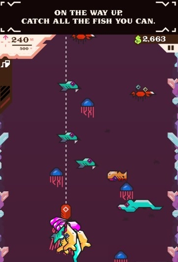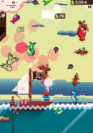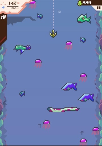 奇葩钓鱼 Ridiculous Fishing是一款有趣的钓鱼休闲游戏。玩法就正如游戏的英文名字一样:Ridiculous。游戏开始,玩家垂钓,让鱼钩尽可能的深入海底,期间避开任何鱼类,一旦碰到鱼,就开始收杆,这时候要尽量碰到鱼,碰到的统统会上钩。当鱼钩升上水面的时候,会将所有收获的鱼类华丽地撒向空中,然后疯狂扫射,射到多少就奖励多少,不断升级装备,达到人生最大的满足。