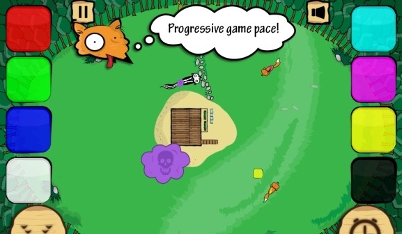 疯狂的狐狸 Crazy Foxes是一款平面策略类游戏。玩家通过辨识狐狸的颜色,选择对应的色块将其消灭,保护自己的鸡舍。如果狐狸聚的过多,你可以用“Crazy Goose Squadron”(疯狂鹅中队)来清屏或者疯狂模式种的超速撕裂解决他们。