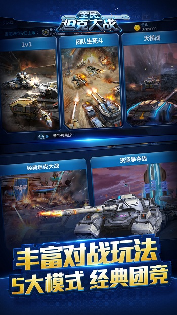 团队生死战、资源争夺战、经典坦克大战、1V1对决、军团争霸,最全即时对战模式,30+地图,大战场,大乐趣。经典团队竞技,满足对战需求。