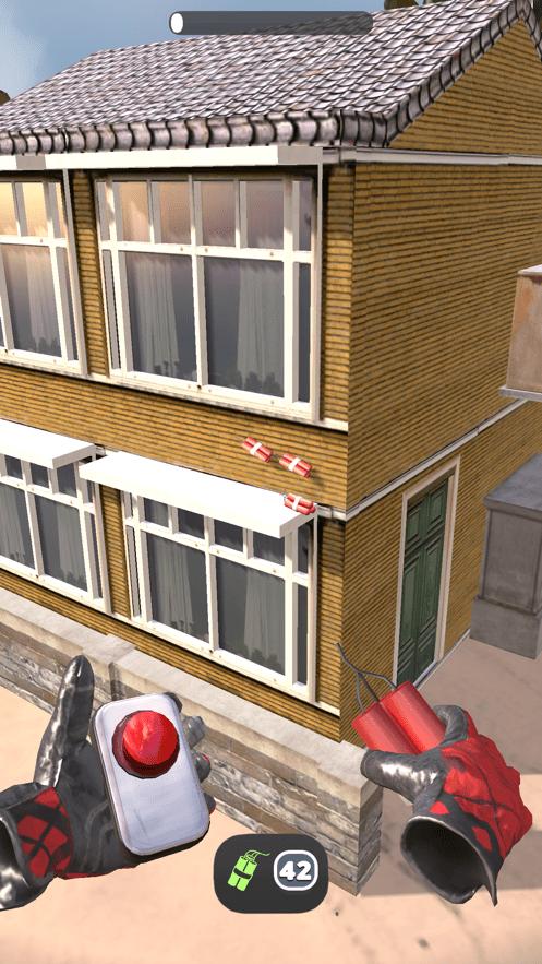 按下按钮引爆炸弹,看着这座建筑化为灰烬,点击屏幕并投掷炸弹。