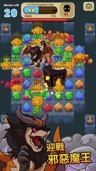 轻松上手的经典三消玩法,结合RPG战斗策略、精灵组队,令游戏更丰富刺激!