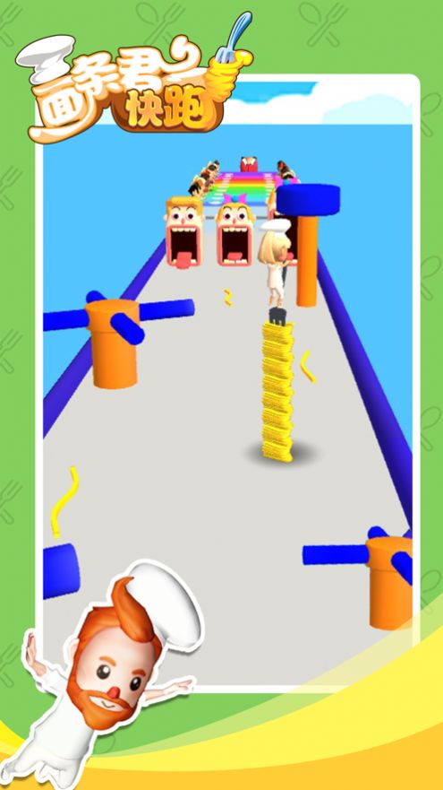 2、控制旋转小人,前面的障碍是一些小测试,收集面条继续你的冒险;