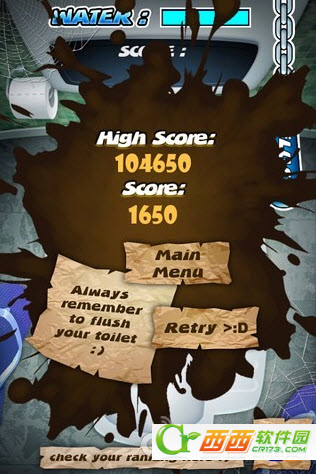 厕所历险记 Toilet Flush adventure是一款很有创意的趣味休闲游戏。游戏的题材十分新颖,操作也非常简单。点击开始,在便便冲向你之前按下冲水键,另外记得点击虫子获得额外分数。游戏的背景是在厕所里,你需要和厕所里的各种怪物战斗,用水把它们冲下去用超级清洁刷刷干净,记得随时要小心便便的假动作,越往后玩怪物的种类就越多,各种造型的高分便便会挑战你的极限,记得一定要记得冲厕所哦!