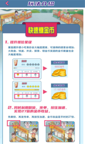 2.不断的扩大你自己的商铺,获得更多招租顾客,就能获得源源不断的金币;