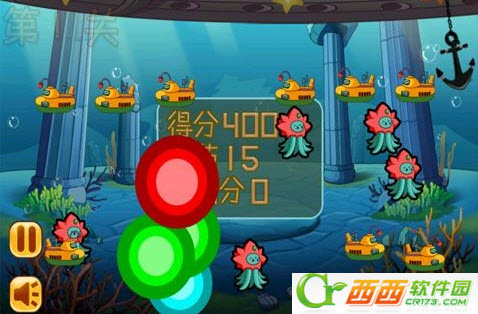 海域警报发出强烈入侵信号,玩家们就是保护舰船的勇敢战士,来吧!保卫舰船是你们无上的荣誉。玩家要保护自己的船不被海底生物接触到并将其全部消灭。玩家一开始只有15个炸弹,而炸弹会在玩家点击的地方爆炸。我们要做的就是在炸弹用光前消灭所以海底生物。而所以的单位都能波及周围的目标,造成连爆。另外,如果一次性能消灭三个以上目标,还能补充炸药。