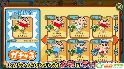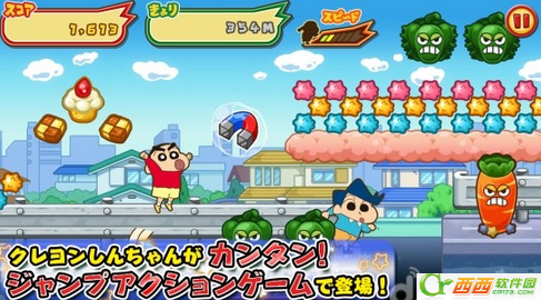 在这款游戏中玩家将要控制着猥琐但是又很可爱的小新在夕阳下进行奔跑,收集各种不同的物品。玩家在跑酷的过程中还需要注意沿途的辣椒怪物,同时可以为蜡笔小新装备上各种服饰,假面超人装、企鹅装、恐龙装等等。