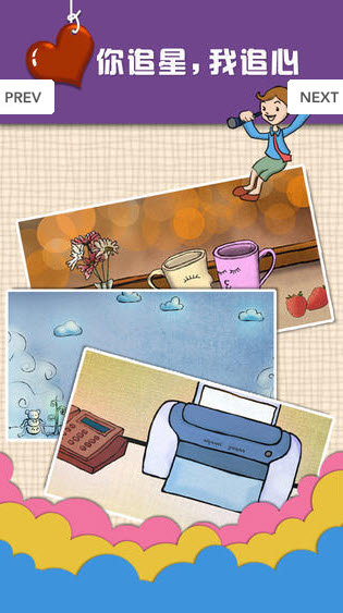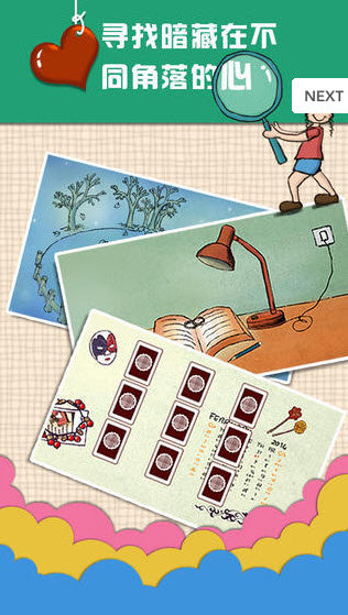 游戏画面实在是太太太Q啦,采用素描方式刻画的粗糙线条中,走的却是卡通卖萌的路线,淡淡的蜡笔色彩中,各种暖色调的光线将整体画面烘托的无比温馨,找到爱心时一圈圈爱心呈现的动态效果美轮美奂,浪漫至极,有点像主人在用漫画的形式描写日记。