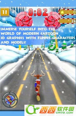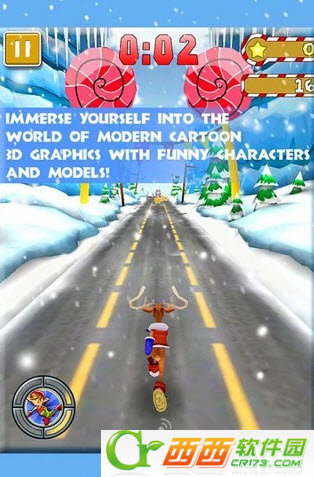 驯鹿跑酷是一款画面精美的跑酷游戏,游戏以可爱的驯鹿为主角,你扮演一个驯鹿,邪恶的圣诞老人要抓住你!你必须避免被抓获,赶紧跑起来吧!