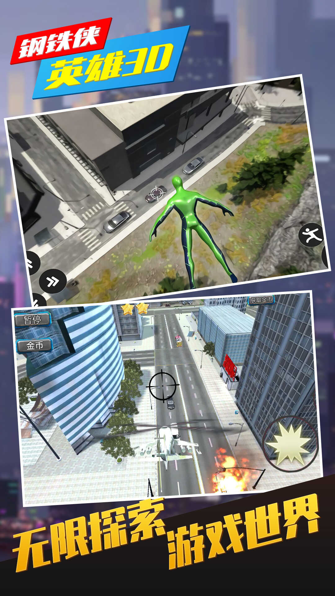 2、你可以化身成为一名钢铁侠来进行各种冒险战斗,体验全新的玩法操作,你可以进行自由的作战对决;