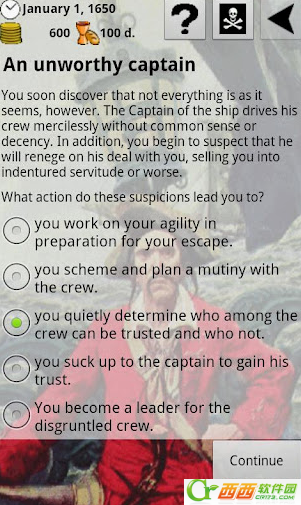 Pirates and Traders(海盗和商人)是一款在Android市场上评价非常高的回合制角色扮演游戏,在这款游戏中,你可以选择成为和平的商人,为各个岛屿供应各种商品;或者成为一个贪婪的海盗,在海上发动争夺土地和财富的战争。回合制游戏,这款游戏在安卓市场中有着非常好的评价。在游戏中如果玩家选择商人就需要子啊各个岛屿之间不停的穿梭,买东卖西,赚取高额的利润。如果玩家选择海盗,玩家将会踏上一条血腥的道路,玩家需要在海上发动战争,用暴力手段获得土地和财富。