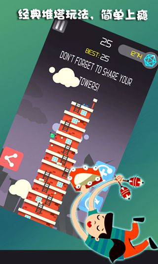 一款超级经典的叠塔休闲游戏,建设你的梦幻高楼。上手简单,梦幻般精美画面,爽快流畅的手感,多种惊喜道具组合,带给你最高品质的休闲游戏体验,绝对让你爱不释手!