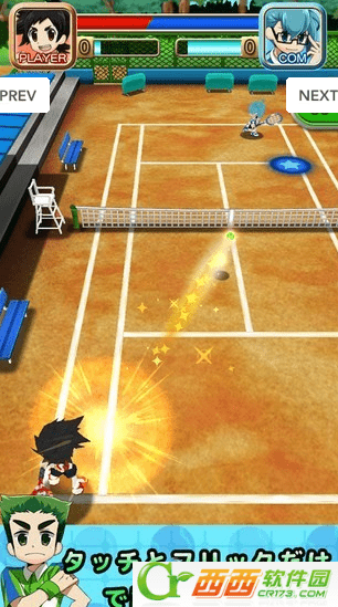 网球大作战(The tennis -perfect smash)是一款网球游戏,打网球嘛!一直都是很高大上的运动。但是游戏的主角换成了2位卡通风的可爱小正太。与平时常见的真实风不同游戏走的是华丽的日系卡通风格,精致细腻的画面,灵活简单的操作,都称得上难得的佳品。喜欢网球运动的玩家赶紧来尝鲜啊!