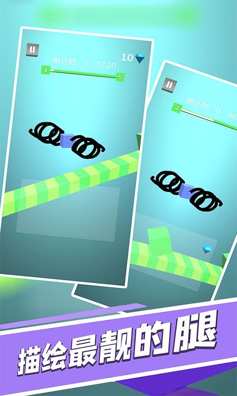 每一次闯关人物都要画上合适的腿才能成功的完成跑酷闯关任务,提升名次。