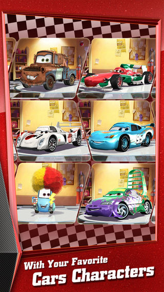 从传奇的闪电麦坤到豪华的超哥,玩家可以化身为20个汽车总动员中的角色,还可以升级并变换车身颜色!