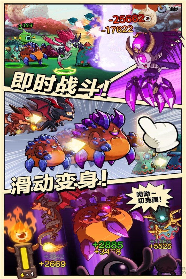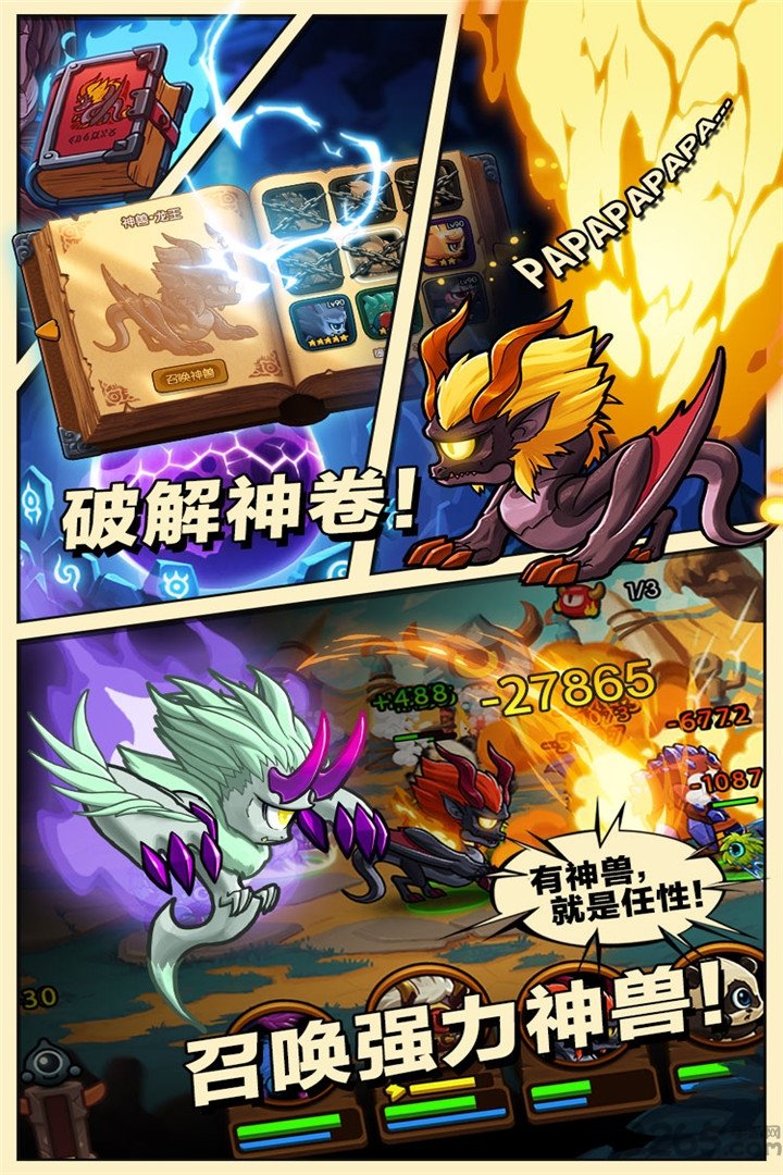 【神兽系统】:传说中最强的瞳兽——神兽,你也有机会获得!在探索中可以看到神兽们的雄姿和描述他们威能的诗歌,而打开神卷则可以浏览召唤神兽需要的瞳兽名单。每获得其中一个瞳兽,就能够解锁相应的格子,而神卷的9个格子都被激活后,就可以召唤传说中的神兽了!然而神兽并不是拿到就可以放心了。神兽的星级需要召唤名单上的9名瞳兽的总星级达到一定数量后才可以升星,2星需要18颗,3星需要27颗……也就是说只有9个瞳兽全部满星,才可以获得满星神兽!而神兽进阶到绿、蓝、紫色时需要专属装备,则需要在每一章的黑洞关卡中击败BOSS才能获得相应的碎片;注意在这个战斗中必须派出相应的神兽才可以开战哦!不过神兽的威力绝对值得如此辛苦,至于神兽到底有多强,还是等玩家自己拿到后慢慢体会吧~
