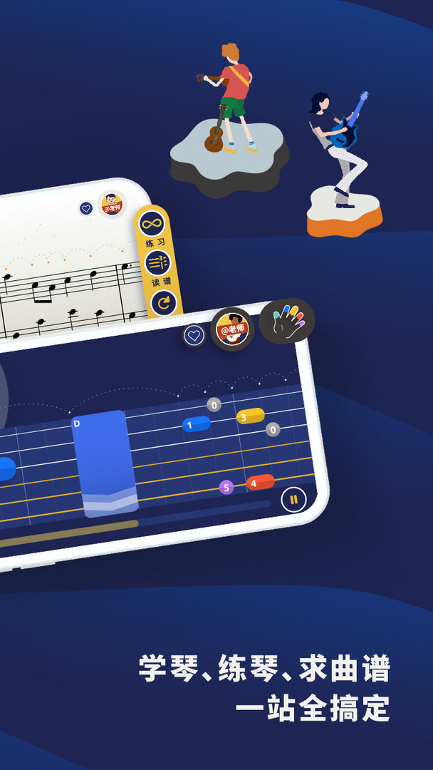 3、轻轻松松学乐器,快快乐乐的享受生活,一边玩游戏,一边学吉他。