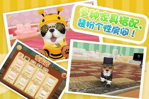 3、个性功能,房间装饰。给你的狗狗穿上衣服,装饰你的房间,摆放家具。