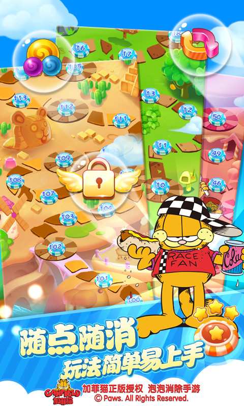 2、这也是一只全世界37周年经典贱萌人气值超级偶像--加菲猫。这也是一款极为简易非常容易上手的泡泡龙清除手游游戏