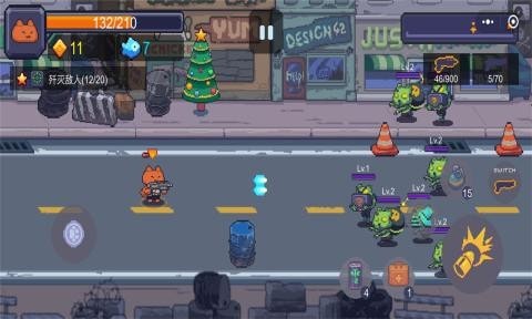 不断追赶僵尸怪物,升级猫科英雄和武器,以挑战更多的水平。