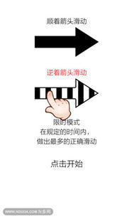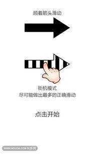 首先这款游戏的玩法是很简单的,画面中会出现两种类型的箭头标志,分别是实心的和空心的,我们看见实心的箭头就顺着箭头的方向滑动屏幕就行了,遇到空心的就要反方向的滑动屏幕。这真的是太忧伤了,反应完全是跟不上的节奏啊。