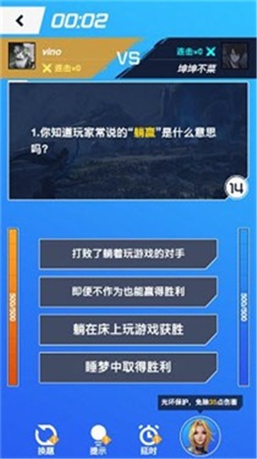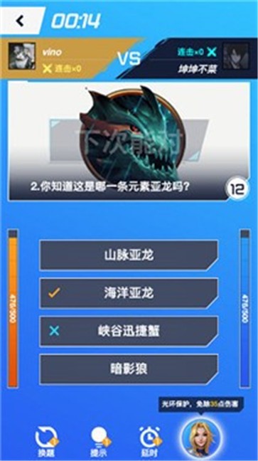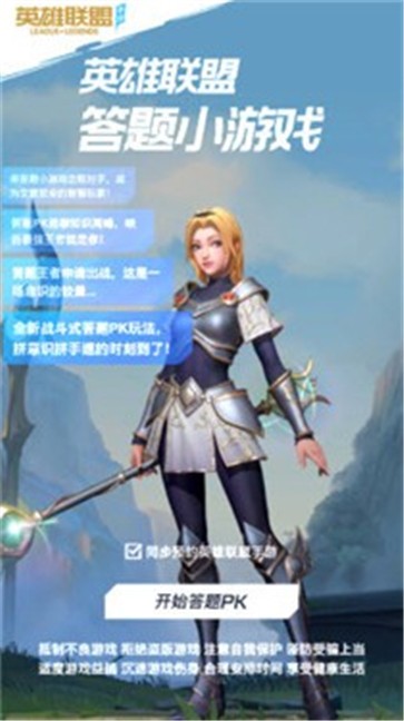 1、在英雄联盟答题小游戏中,你可以和不同的对手进行实时答题PK;