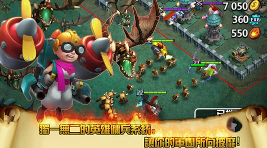 3、畅快激昂——英雄与士兵完美结合,体验掌间的军团行动!无需训练士兵,英雄只要存活就任你去战斗!