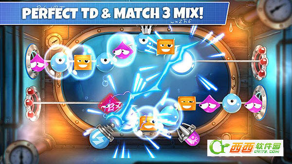 死亡爆炸 SPLODE’N’DIE是一款塔防与三消相结合的休闲益智游戏。在游戏中,我们要做的事情就是阻止怪物进入入口,我们的方法就是利用刺、镭射、电和火四种不同的武器来消灭他们,但是每一种颜色的怪物只能够用特定的武器来进行伤害,其他的则无效。作为塔防游戏,与传统塔防一样,游戏中敌人会沿着固定路线游动,玩家需要用各种炮塔阻止它们到达终点。