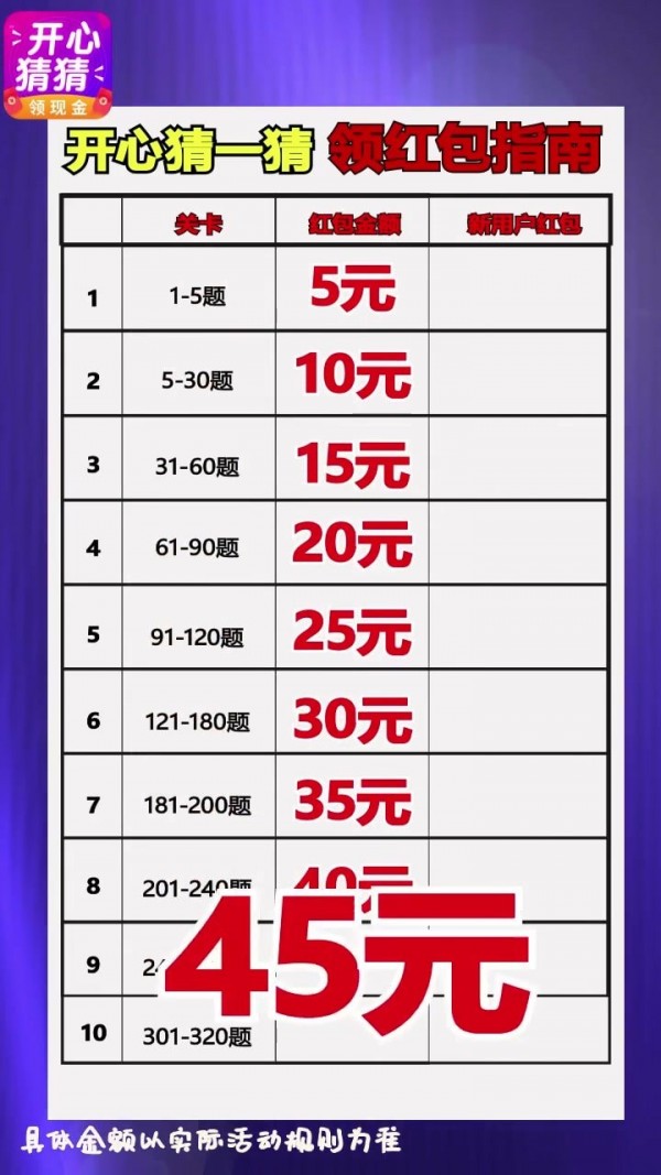 欢乐猜一猜红包版是一款回答问题就可以领取红包的游戏,答对应对挑战完成对应的题目,加入到欢乐猜一猜游戏的答题环节中,用手机挑战,丰富的题目都带给你,欢乐猜一猜给您更多精彩的猜题考验,一一体验精彩制作的题材关卡,题目轻松选择,您能够更好闯关,走上人生巅峰。