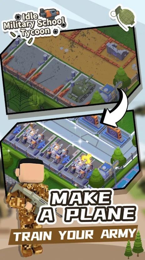 1、空闲的军校大亨中以Q萌的画面出现,军事气息更可爱,你要在此培养士兵。