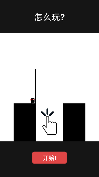 因为是休闲游戏,所以游戏的玩法非常简单,就是通过棍子让游戏中的小胖英雄跳过障碍和悬崖。游戏的操作也非常轻松,将手放在屏幕上,可以让棍子变长,当你觉得可以够到对面的的时候在点击屏幕就可以放下棍子,走过去了。你要注意的是,太长和太短都会影响你顺利通过悬崖。