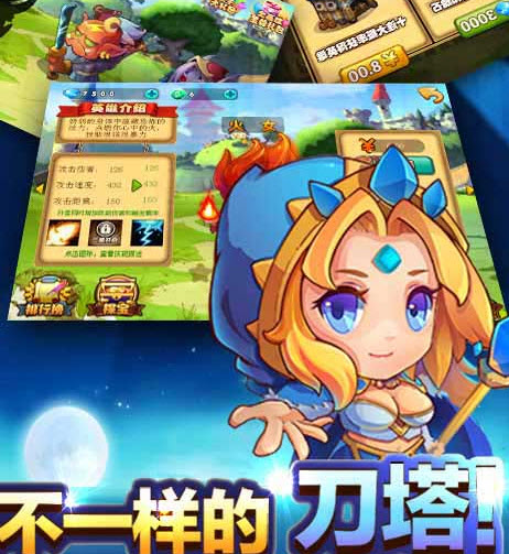 而且还有精英关卡、无尽模式来进行实力挑战,更有全国争霸赛活动来证明你的排名,努力登上刀塔世界的巅峰吧,无尽的怪物正等待你去讨伐,女神小冰冰正期待着你的守护。