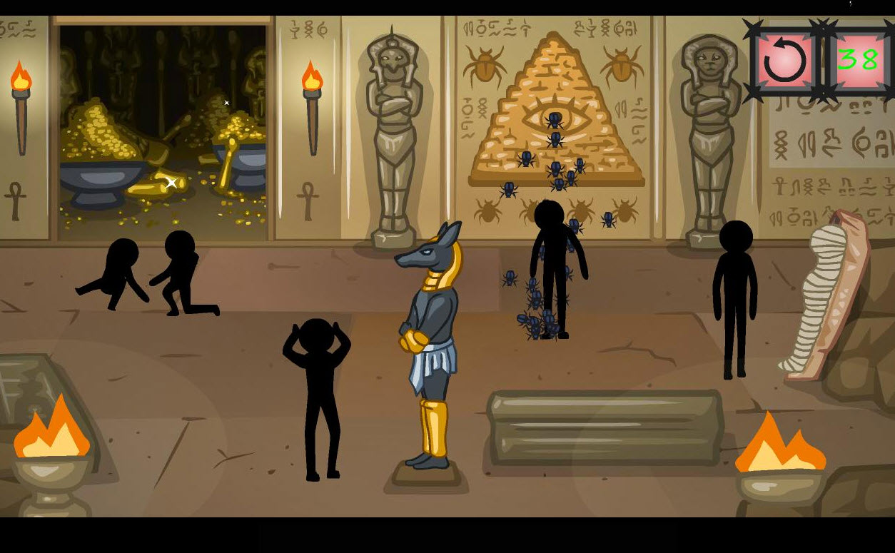火柴人法老王的诅咒Stickman. Curse of the Pharaohs是svsstudio开发的一款解谜类游戏。杀死像一个意外的法老墓的所有的僵尸。杀人游戏训练你的一切心理技能和提供了极大的满足感。发现屏幕上的隐藏的物体或地方,按他们(顺序可以是重要的)和铅蹦极小人到痛苦的死亡。你有一半分钟杀的水平(通常为5-6)每一个火柴人,要解决这个火柴人死亡游戏。享受游戏的法老巨大火柴人诅咒,快速和智能,同时玩这个大脑扭拼图。使用回放和帮助按钮,找到杀死他们的最好的方式。这是第九个比赛火柴人死亡黄金线。