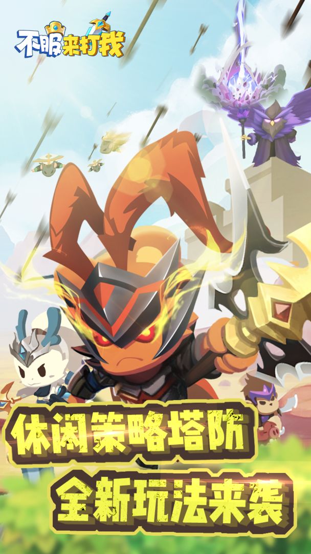 1、不服来打我是一款快乐大乱斗的呆萌游戏,主推塔防游戏策略玩法。