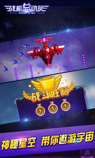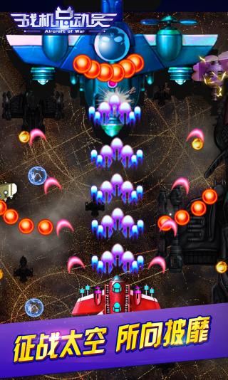 星空般的场景让你有种身临其境的感觉,控制各色各样的酷炫战机去征服浩瀚的宇宙,收集各种强力的道具助你一臂之力,视觉震撼的战斗场景 ,让你沉迷其中上身不能自拔,还等什么快来出击吧!