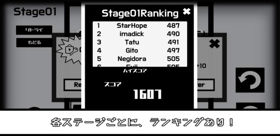 3、总计50道不同关卡等待玩家挑战,关卡还设置了排行榜,让玩家来争夺排名。