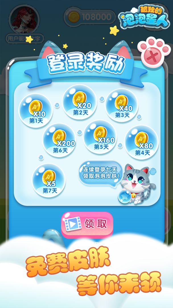 孤独的泡泡星人游戏是一款可爱的闯关小游戏。清新的游戏画面,温暖的背景音乐,和Q萌的泡泡星人一起冒险,只需要动动手指就能轻松完成关卡挑战,完成任务就能领取各种奖励,还有非常多的皮肤等你解锁,为萌萌的泡泡星人换上更加好看的皮肤吧!