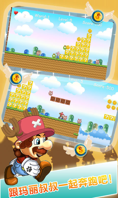奔跑吧马里奥!奔跑吧马里奥是一款经典的闯关跑酷类游戏不知道小伙伴们还记得童年的所玩的超级玛丽吗,让玩家根本停不下来,通过控制马里奥打败里面的小怪,画面精美,就来下载试玩吧。